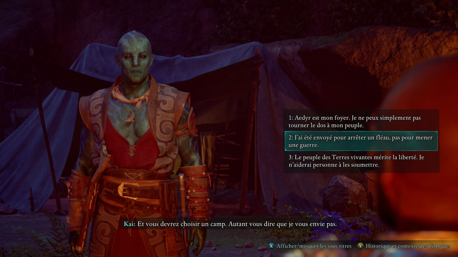 On aurait facilement pu imaginer une tournure des événements où, ayant favorisé l'indépendance des Terres Vivantes pendant notre partie, ce choix final nous serait enlevé. Les leaders locaux nous auraient gentiment remerciés pour notre aide et auraient repris les choses en main, imposant leur vision collective et légitime, plutôt qu'attendre qu'on leur dise quoi faire. Cela aurait impliqué de déposséder les joueurs et joueuses du sacro-saint pouvoir de choisir, une hérésie en termes de game design, mais une hérésie porteuse d'un sens fort. Cette pirouette de design aurait aussi permis de mettre les joueurs et joueuses face aux conséquences de leurs actes passés dans tout le jeu, ce qui aurait certes été moins cool que de donner à choisir la sentence de tout un peuple, mais aurait certainement été plus satisfaisant d'un point de vue de la cohérence globale du récit. Abandonner la position de personnage principal, savoir se mettre en retrait pour laisser parler les concernés, ne plus usurper leur parole, aurait été une belle manière de porter un message décolonial à travers le gameplay.